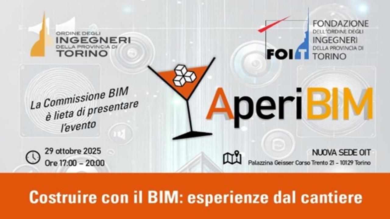 Si segnala che la Commissione BIM dell’Ordine degli Ingegneri di Torino organizza un nuovo evento AperiBIM nella nuova sede OIT in Corso Trento 21 a Torino.