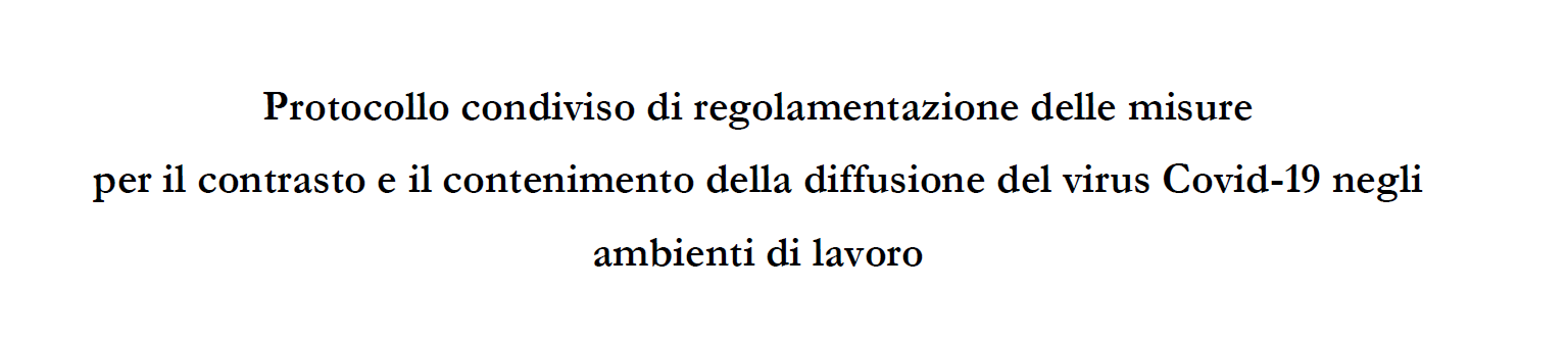 Accludiamo il testo ancora ufficioso del Protocollo nazionale di regolamentazione delle misure per il contrasto e il contenimento della diffusione del Covid-19 negli ambienti di lavoro. Al riguardo seguiranno ulteriori comunicazioni.